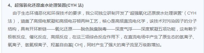 超強(qiáng)氧化還原廢水處理裝置(CYH法)處理各種有機(jī)廢水、各種重金屬?gòu)U水