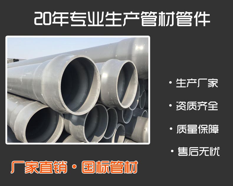 PVC-U排水管管材、管件符合GB/T 5836.1-2006和GB/T 5836.2-2006的標準要求。產(chǎn)品有直管、擴直口管和擴凸口管三種形式,可使用多種管道連接方式。