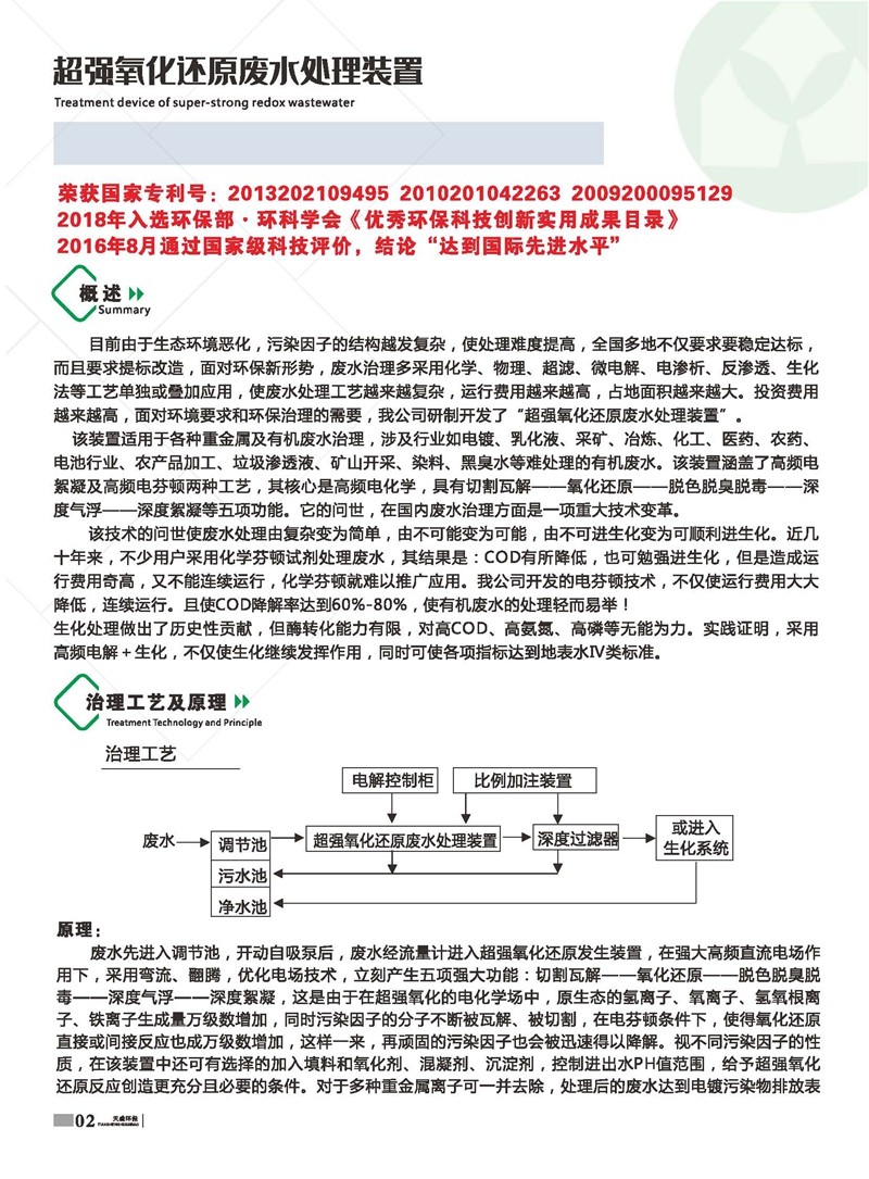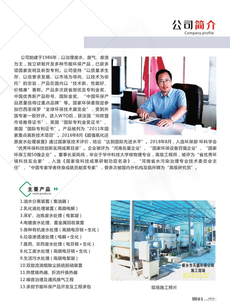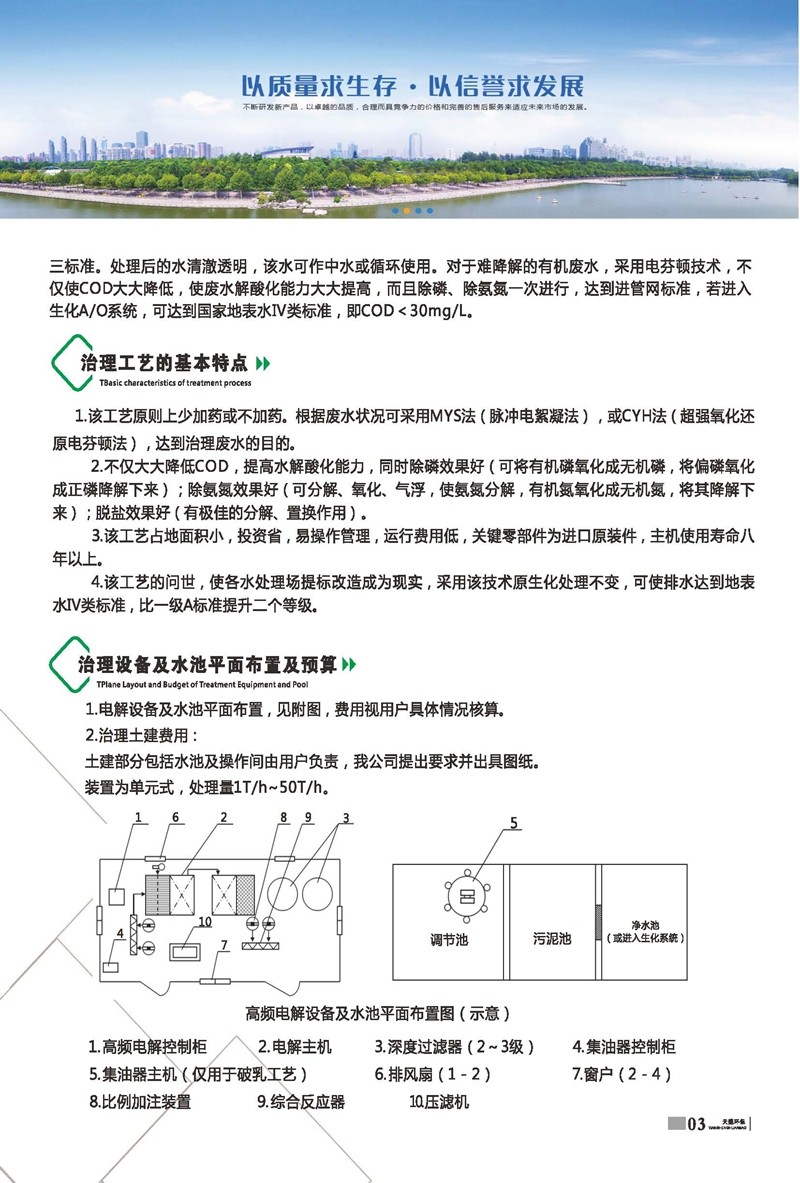 公司始建于1986年,以處理各種有機(jī)廢水、各種重金屬廢水為主,獨立研制開發(fā)多種節(jié)能環(huán)保產(chǎn)品,已獲多項國家發(fā)明及新型專利一種電化學(xué)廢水處理裝置 ZL 2013 2 0210949.5。公司堅持“以質(zhì)量求生存、以信譽求發(fā)展、以市場為導(dǎo)向、以技術(shù)為依托”的宗旨。
