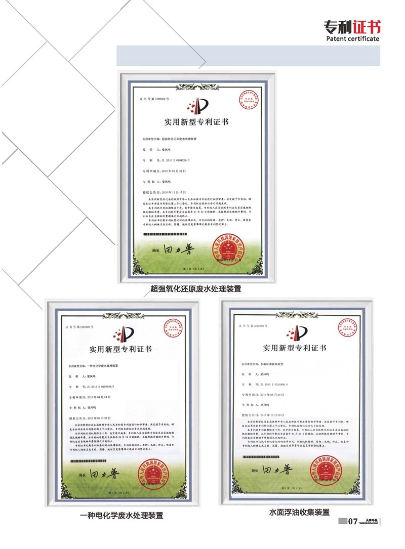 以治理廢水為主,獨立研制開發(fā)多種節(jié)能環(huán)保產(chǎn)品,已獲多項國家發(fā)明及新型專利水面浮油收集裝置 ZL 2013 2 0211856.4。公司堅持“以質(zhì)量求生存、以信譽求發(fā)展、以市場為導(dǎo)向、以技術(shù)為依托”的宗旨,產(chǎn)品在國內(nèi)以“技術(shù)新、性能好、價格廉”著稱。